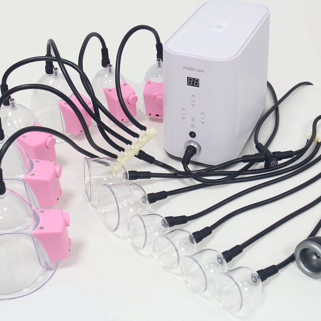 •   Аппарат оснащен 8 вакуумными банками со встроенным вибромассажем, что усиливает эффект процедуры.